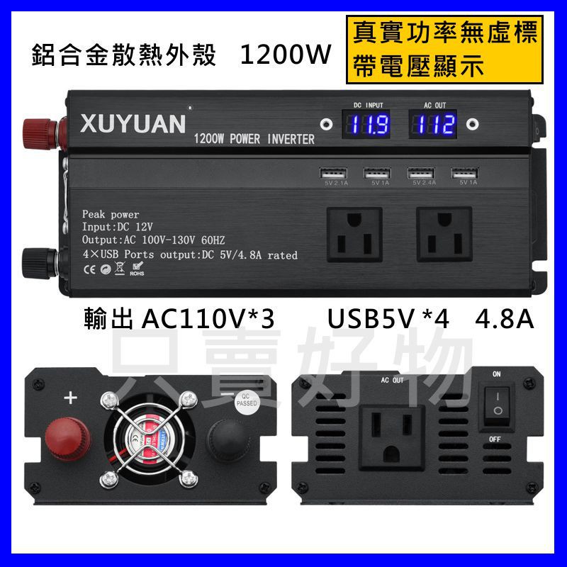 只賣好物 當天出貨 汽車12v轉110v 10w Usb4 8a 24v轉110v 點菸孔電源轉換器車充逆變器 蝦皮購物